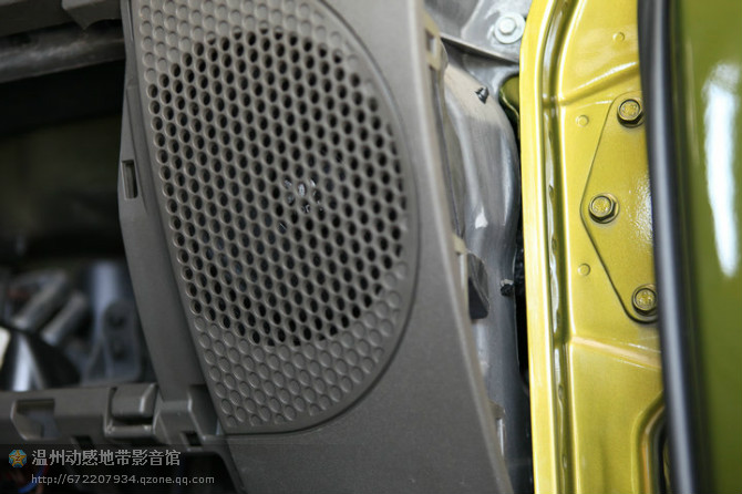 中低音喇叭安装在原车喇叭位置真正的无损让我们拭目以待....下面这个是高音安装位置和原车低音..
