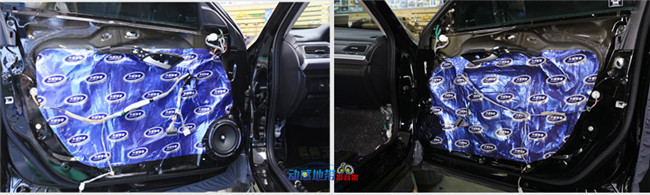 针对原车隔音效果不足,车主选择了隔音界知名的大能隔音产品做了四门隔音,即前后门板的内外都贴上隔音材料。隔音的好处不言而喻,其有效地减少各种噪音的传入外,也能抑制车在行驶过程中的门板金属震动。另外,门外内外贴上隔音止振板正好形成一个密封的箱体,这给装在门板的中低音提供了一个“密闭箱”,能够一定程度的提升喇叭音质效果,确保喇叭的效果实质的发挥。